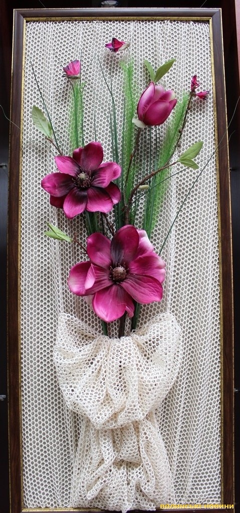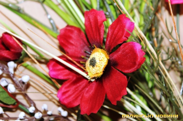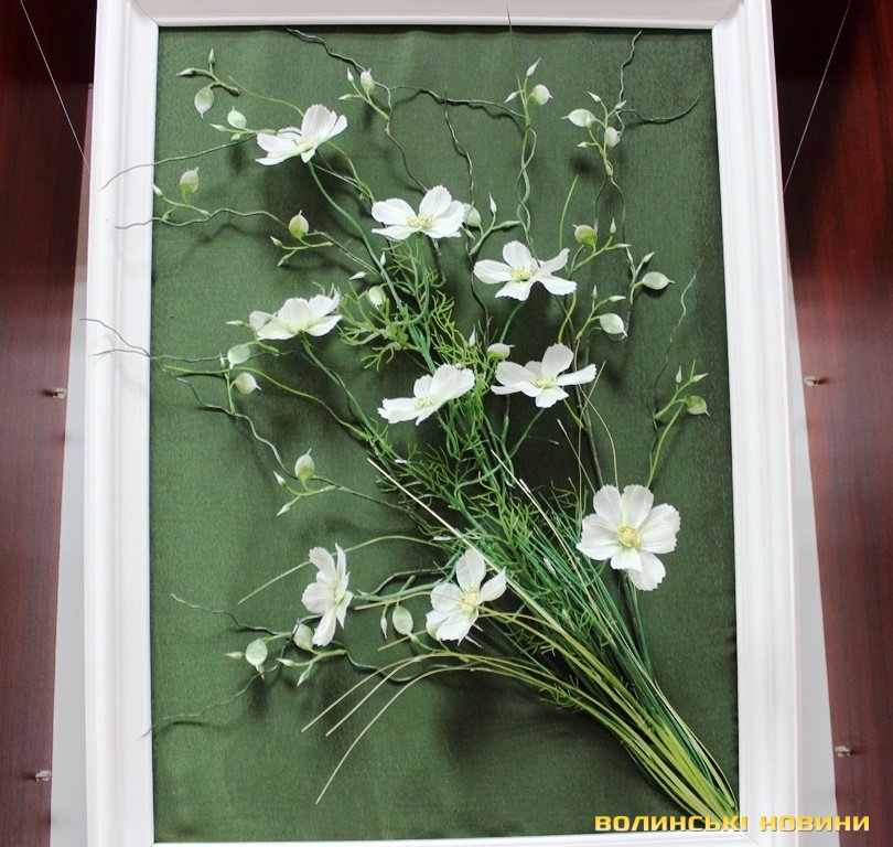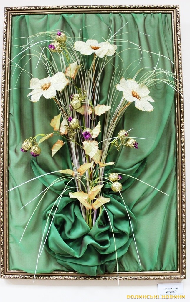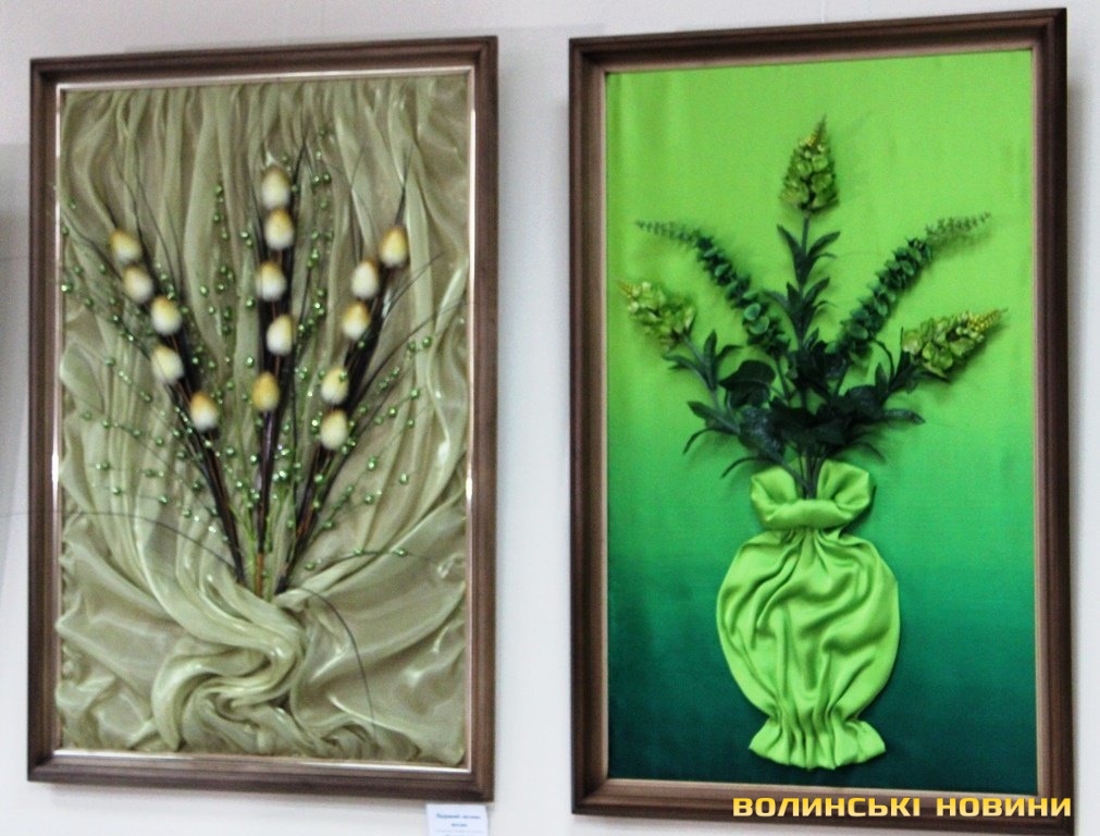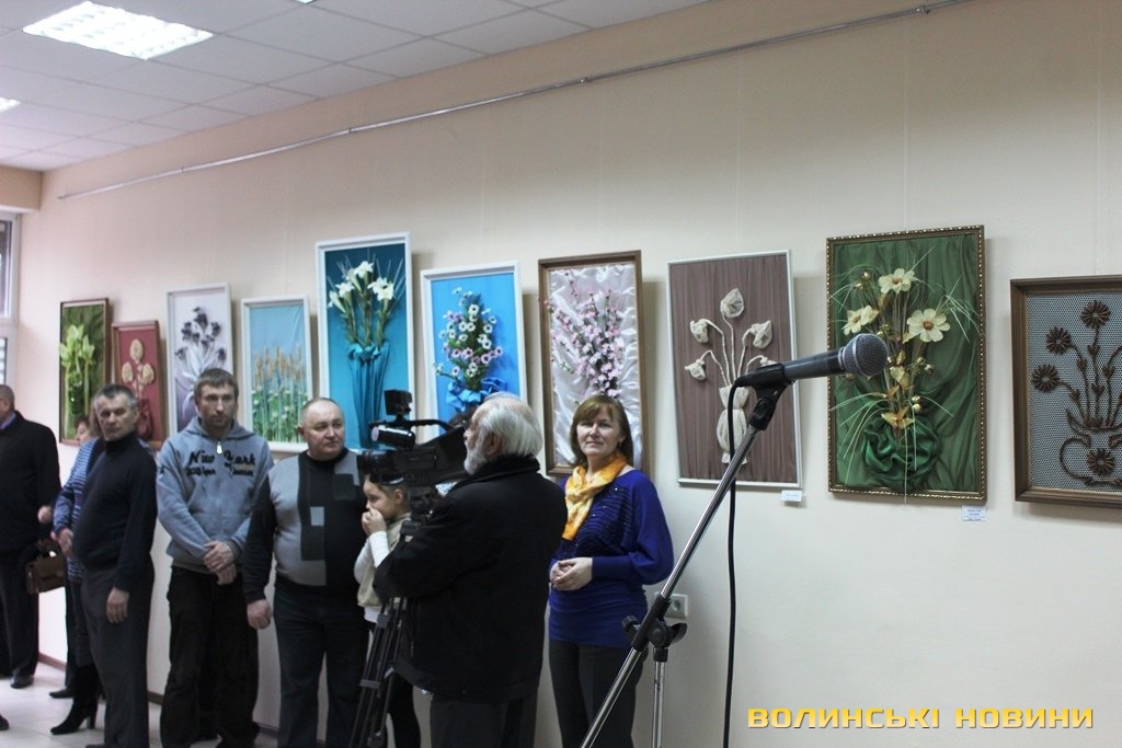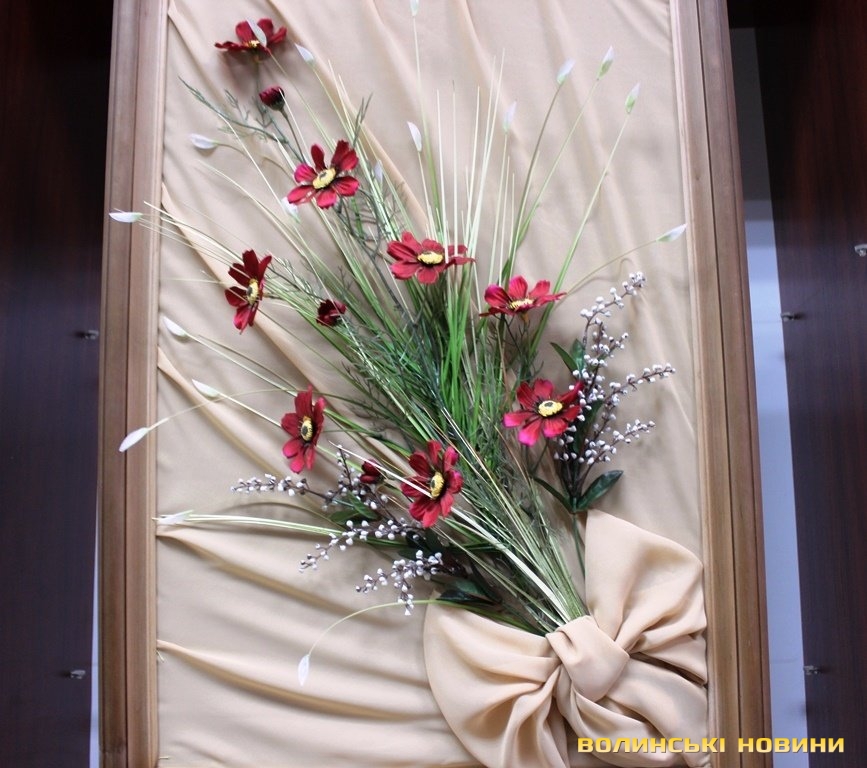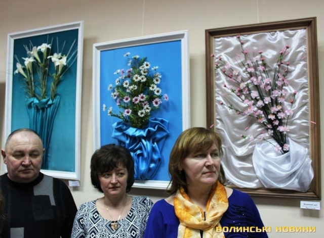 Авторка експозиції, ковельчанка Віра Семеній, розповіла присутнім про власні роботи: «Це авторська техніка. Мій стиль особливий, це Бог посилає таке творіння. Я не шукаю в комп’ютері ідеї, усе приходить саме собою. Розпочала над цим працювати з 2009-го року, коли робила першу картину з паперу «Білі троянди» - стиль оріґамі. Потім щось, ніби, наштовхнуло почати робити квіти з тканини, це щось надзвичайне. Тканина така незвична, її приємно торкатися, вона піддатлива, дуже гарна»,- розповідає майстриня.