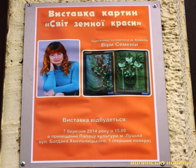 Волинянка із Ковеля стала новаторкою у галузі декоративно-художнього мистецтаі. Персональну виставку Світ земної краси» з унікальними картинами відкрили у мистецькому салоні «Артист» при Луцькому палаці культури 7-го березня.