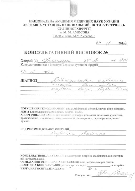 «Хвороба постійно про себе нагадує, дуже тривожить. А коли ми ще й отримали невтішний висновок провідного фахівця в галузі кардіохірургії, професора Ростислава Вітовського, то хвилювання побільшало, адже операцію необхідно робити, як то кажуть, вже сьогодні, а грошей на неї немає», - кажуть родичі жінки.
