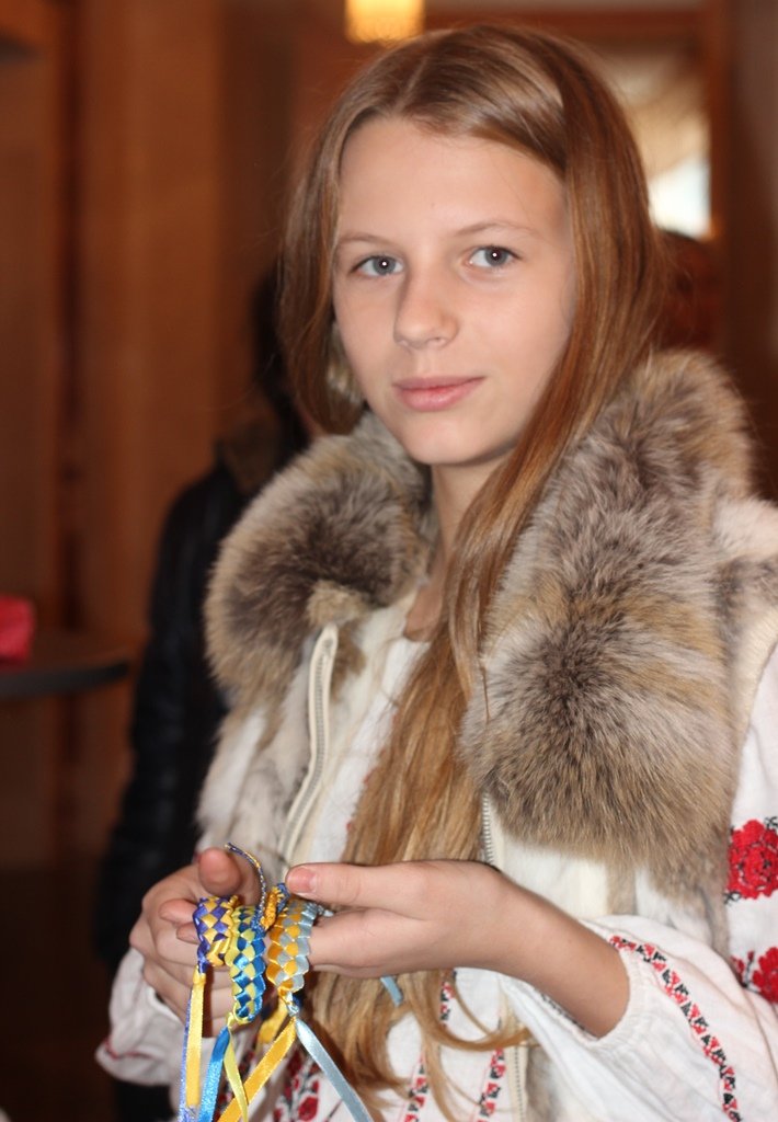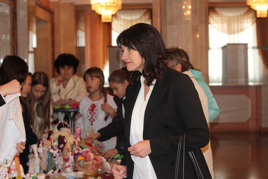 «Я зробила родове дерево «Козацькому роду немає переводу». Воно символізує єдність, а це - дуже актуально. Адже я хочу, аби між українцями і в Україні була єдність і мир. Я про це мрію», - розповідає Олена Стасюк.Долучилася до благодійного заходу і кандидат у народні депутати, голова правління благодійного фонду «Фонд Ігоря Палиці – Новий Луцьк» Ірини Констанкевич.«Наш фонд бере участь у багатьох благодійних акціях, ми їх підтримуємо, особливо ті, які сприяють допомозі учасникам АТО. Тому, коли нам запропонували долучитися, то ми не могли стояти осторонь, бо це відповідає нашій місії допомагати. Зокрема, мені імпонує, що ці речі зроблені руками дітей, вони зігріті теплом, наповнені любов’ю. Я знаю від наших військових, які перебувають на Сході України, як важливо для них отримувати такі речі. Вони вголос читають листи від школярів, цінують кожен такий подарунок, зроблений руками дітей. Це не лише знаки поваги, вони мають символічне значення оберегів. Коли я сьогодні подивилася на ці роботи, то зрозуміла, що наша Україна – країна переможців, адже ідея миру присутня у кожному виробі», - розповідає Ірини Констанкевич.