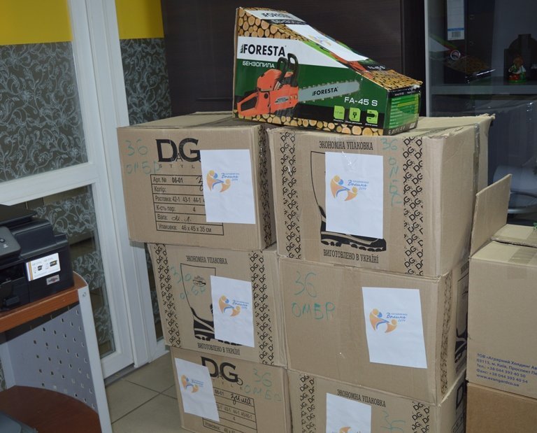 Зокрема, благодійники закупили 200 метрів кабелю, 100 метрів плівки, електричний тестер, енергозберігаючі лампи, ножівки по дереву, набір торцевих головок, 10 сокир, лопати, кутову шліфувальну машину, принтер, мережевий шуруповерт, бензопилу, 22 пари гумових утеплених чобіт, 20 ковдр та робочі рукавиці.