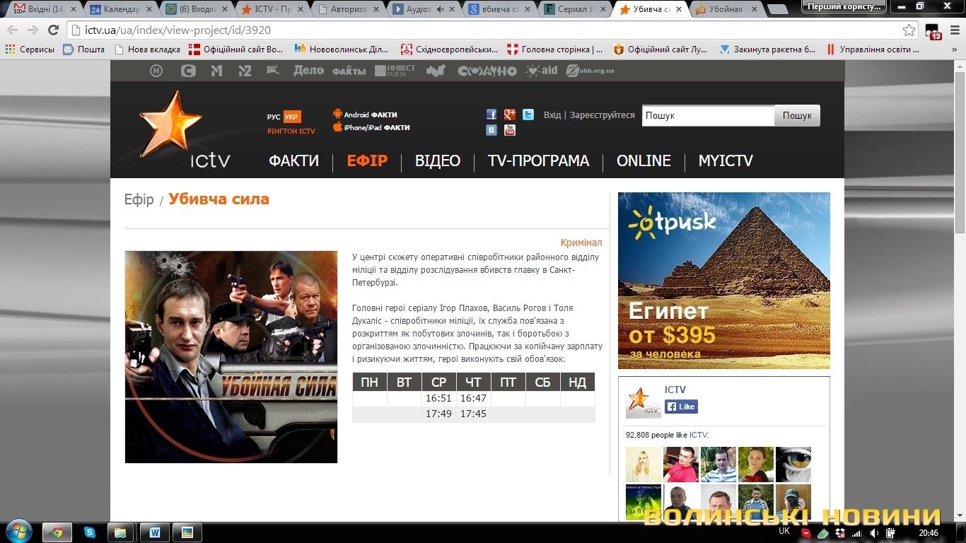 Менше з тим, згідно з мінімальною аналітикою, перелік передач та кінострічок у «меню» деяких облюбованих волинянами каналів, висновки напрошуються геть невтішні.Зокрема, у ефірі ICTV декілька разів на день транслюють такі серіали як «Вбивча сила» та «Опери. Хроніки вбивчого відділу», у сюжеті яких мова - про «бравих» російських міліціянтів, які героїчно розкривають різного роду злочини.«У центрі сюжету - оперативні працівники районного відділу міліції та відділу розслідування вбивств главку в Санкт-Петербурзі» - йдеться у анонсуванні російського детективу 2000-го року «Вбивча сила» на сайті телеканалу.Що стосується кримінальної драми «Опери. Хроніки вбивчого відділу», то назва говорить сама за себе. Фільм почали транслювати на території РФ ще у 2004 році. Він демонструє роботу російських слідчих органів, зокрема, працівників «вбивчого відділку» Санкт-Петербурга та буцімто розкриває внутрішній бік служби у органах міліції.Йдемо далі. Особливу увагу привертає нав’язливе транслювання «братського» криминальный телесеріалу «Слід», що розповідає про працівників неіснуючої насправді організації — Федеральної експертної служби, до якої увійшли програмісти, судмедексперти, оперативники та інші профільні у розкритті гучних злочинів спеціалісти.Особливої уваги вартий і російський детективний серіал «Агент», що змальовує долю секретного агента спецслужб Андрія Козирєва, якого засудили до 15 років позбавлення волі. Ця кінострічка є відносно новою, адже вийшла у світ в 2013 році.Сіткоми у ефірі як згубне явище для молоді