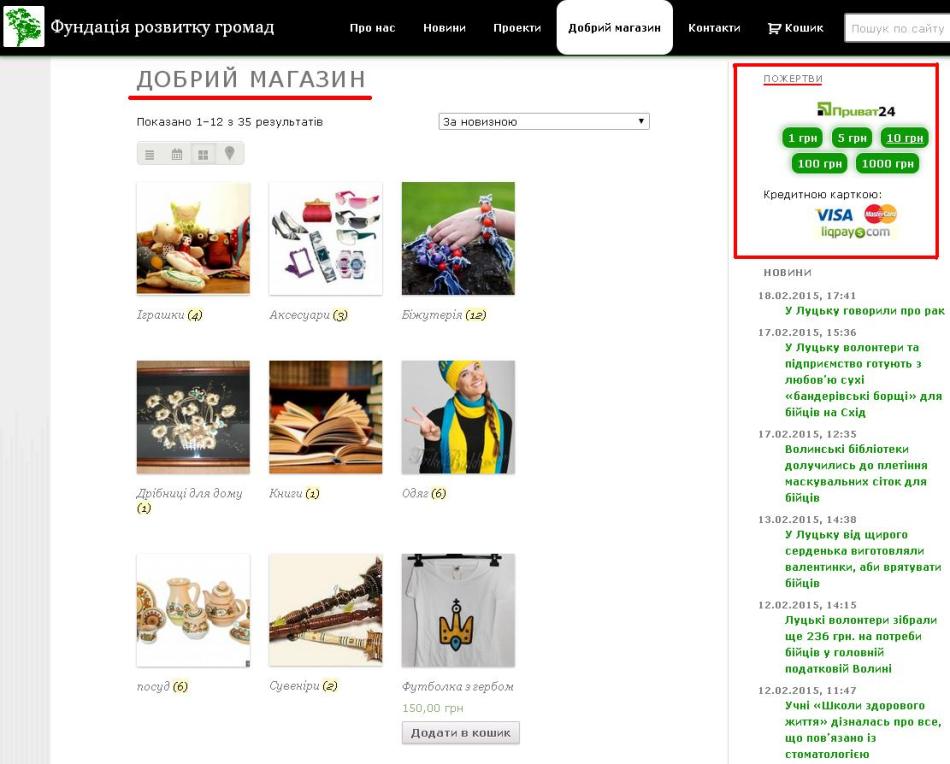 Так, відтепер на сайті громадської організації «Фундація розвитку громад» (http://vogofrg.org/) працює благодійний інтернет-магазин – «Добрий магазин , - повідомили у пре-службі організації.