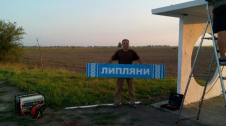На знімках видно, що небайдужі селяни власноруч виготовляють вивіски, які прикрашені вишиванкою.