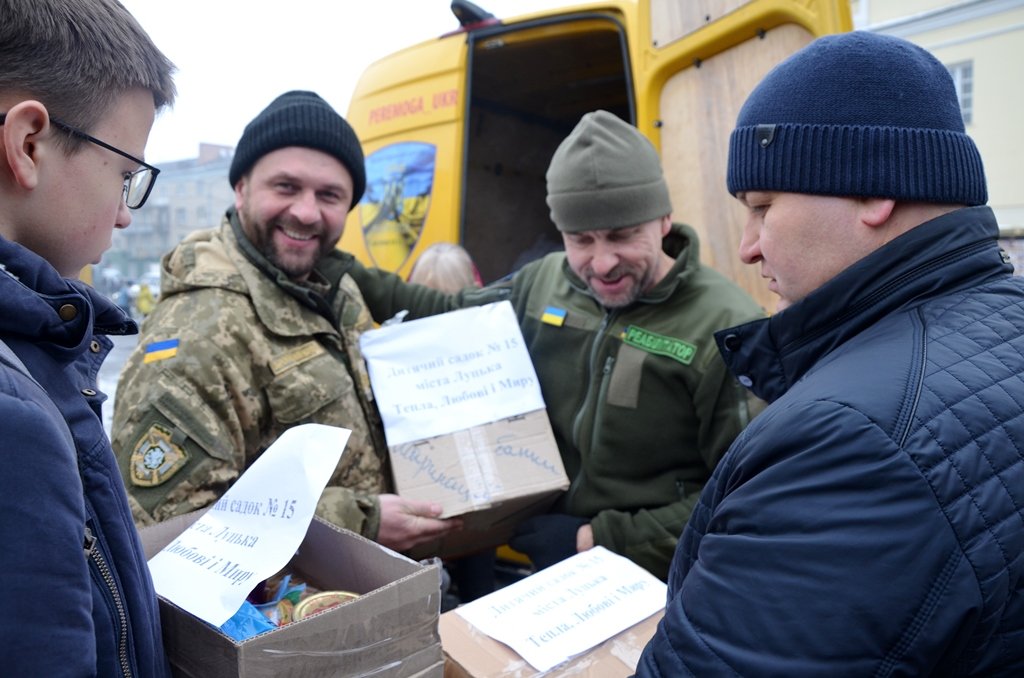 А на ОРК, що на вулиці Гордіюк, 37 деякі небайдужі лучани приносили пакунки двічі на день. Зранку – теплий одяг, після роботи – продукти, розповідає керівник ОРК Інна Карманчикова. Серед численних торбинок із одягом та ящиків печива знайшлося місце і для м’яких іграшок.