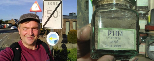 Після тієї подорожі привезти землю додому стало традицією, каже чоловік. В усіх наступних містах та країнах мандрівник шукав визначні, або історичні місця: «В Берліні землю брав звичайно під Рейхстагом, у Парижі з-під Ейфелевої вежі».