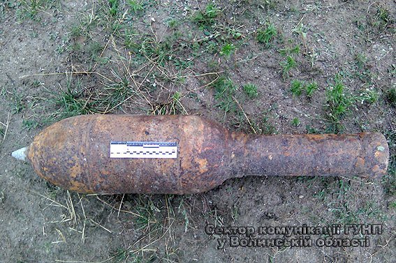 Вибухонебезпечну знахідку поліція знищила на спеціальному полігоні, а осколки направили на дослідження до Волинського експертно-криміналістичного центру МВС України.
