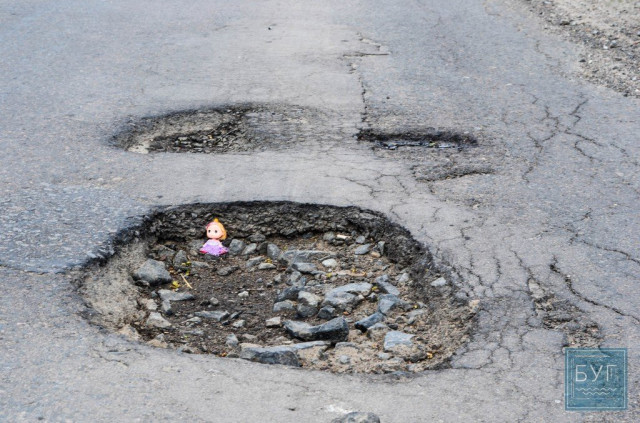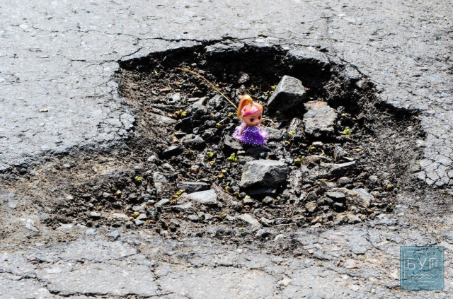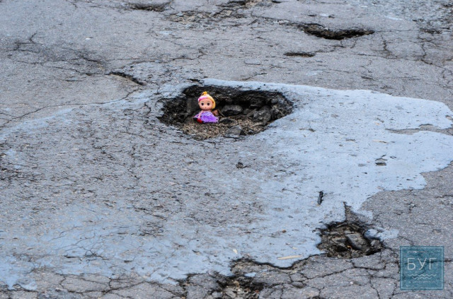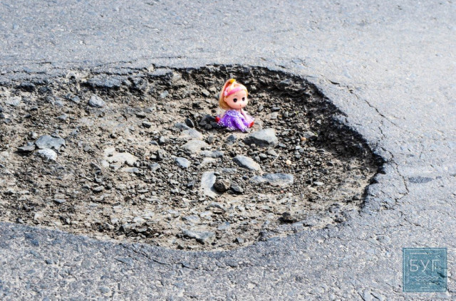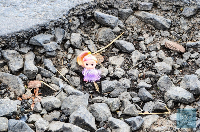 Знайомтесь – «Інспектор Ляля». В сидячому положенні вона має ріст 6 сантиметрів, тому і послужить нам своєрідним мірилом, яке візуально покаже, які глибокі та небезпечні насправді вибоїни на дорогах.