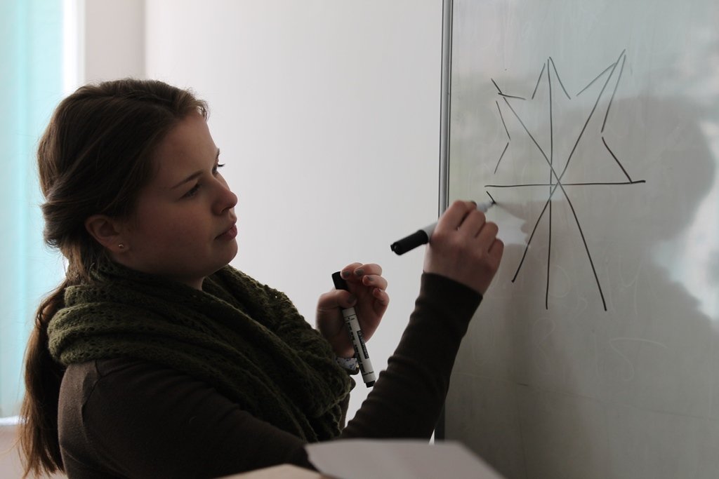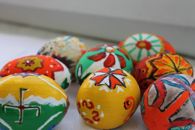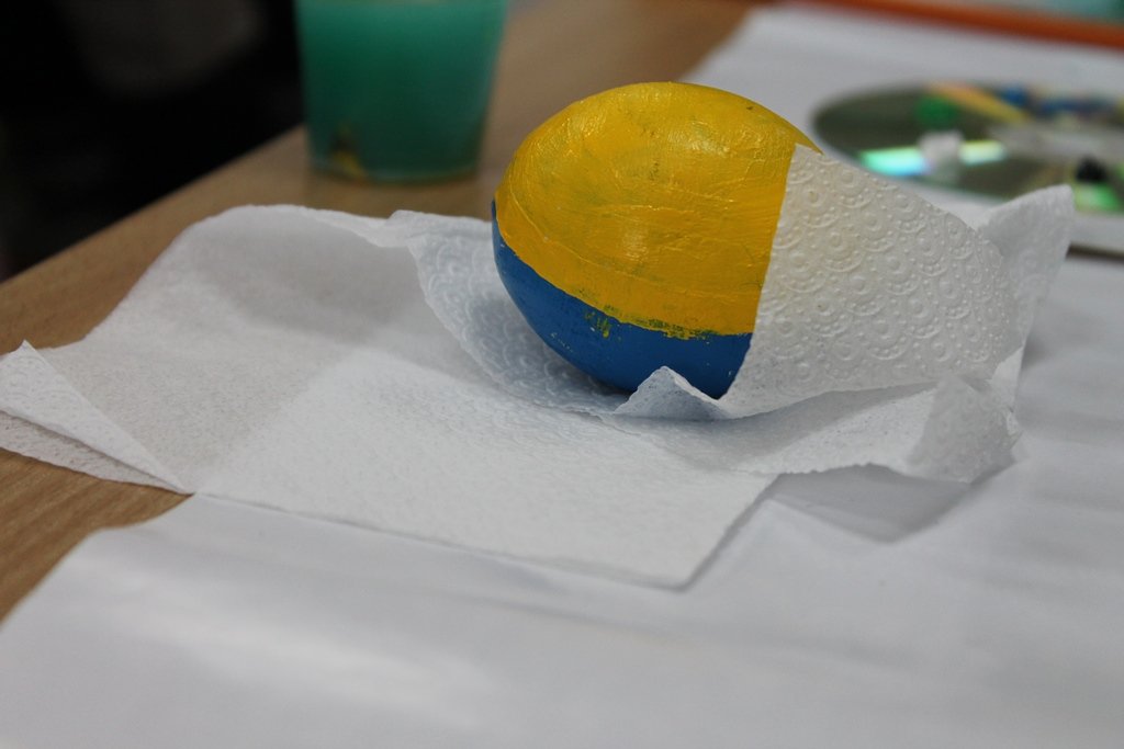 Для розписів було видано дерев’яні яйця та фарби. Згідно з традицією, яйця спочатку розділили на чотири частини – чотири сторони світу, лінії яких символізують собою хрест. Хрест – найдревніший з усіх знаків. Вертикальна лінія позначає чоловічу силу – Вогонь, горизонтальна – жіночу силу, знак Води. На перетині вони утворюють третю силу. Це Любов, життя. Хрест можна розширювати до безкінечності, що позначає безсмертя.