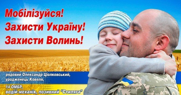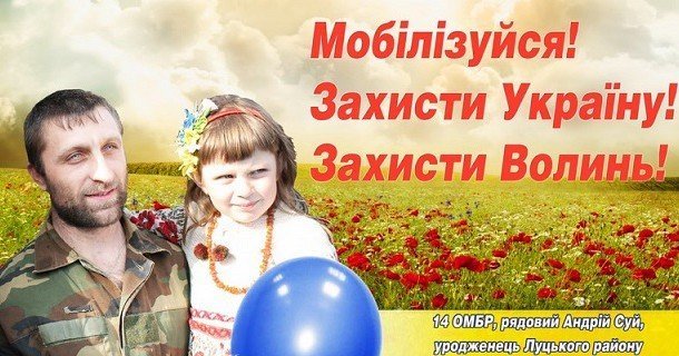 На паперових «полотнах» – уродженці Волині. На одному фото – мешканець Ковеля, рядовий Олександр Ціолковський та його синочок. Герой із міста залізничників – водій-механік захищав Батьківщину у складі 14 ОМБР. Мав позивний «Стиляга».Героєм білборду також став і уродженець Луцького району рядовий Андрій Суй із донечкою. Андрій також служив у 14 бригаді.Нагадаємо, раніше Інформаційне агентство Волинські Новини писало про те, що довелося пройти родині волинського учасника АТО, аби домогтись для своєї чотирирічної донечки пільг.