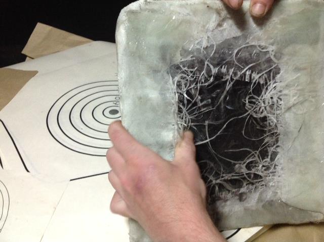 Активіст Самооборони Волині Дмитро Сандалов розповів, яким чином заміняють кевларове покриття, яке захищає бійця від осколків, що відбиваються від бронепластини. У своїй майстерні він обмотує плиту десятьма шарами скловолокна. За його словами цього достатньо, аби куля, яка влучить у бронь не розлетілася по сторонах і не поранила бійця, натомість її рештки втрапляють у це покриття.