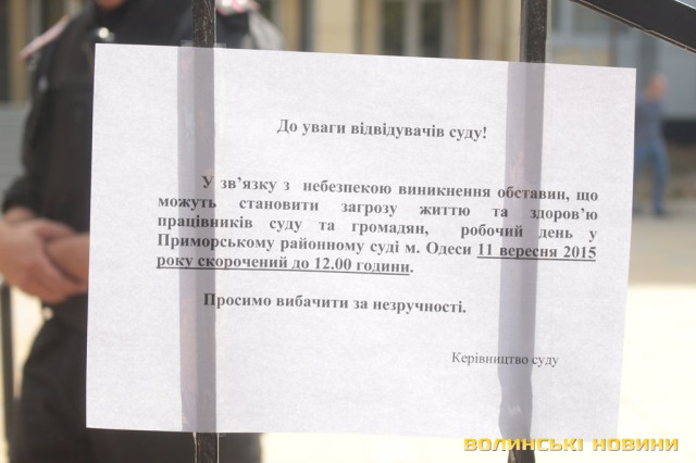 Як пояснив журналістам Інформаційного агентство Валинські Новини судовий виконавець Одеського Приморського суду, адмінприміщення зачинили у зв’язку із небезпекою виникнення обставин, що можуть становити загрозу життю й здоров’ю працівників суду та громадян. Мовляв, через це робочий день Приморського суду скоротили до 12 години.