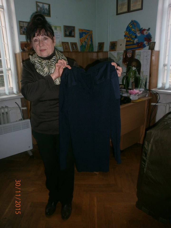Корисні та теплі речі передали від бійця 23 бригади, передані дружиною бійця 51 ОМБр, та кіборга ДУК Валерієм Гонтою побратимам на передову. Теплі балаклави, тепла кофта, зимовий комбінезон, форма та підштаники, шарфи та рукавички.