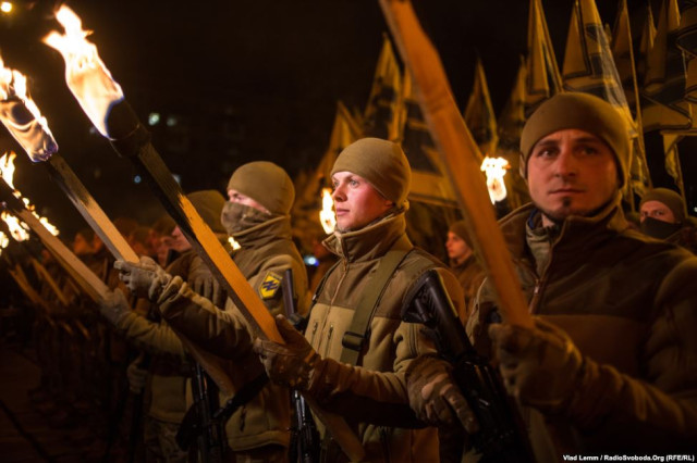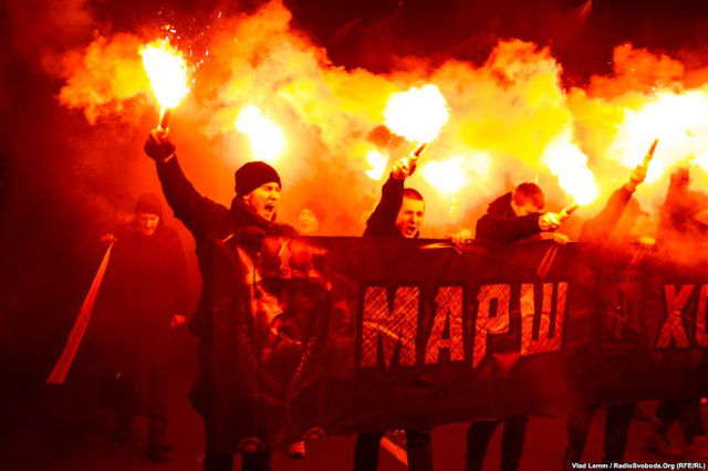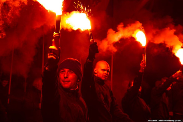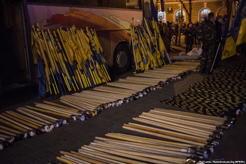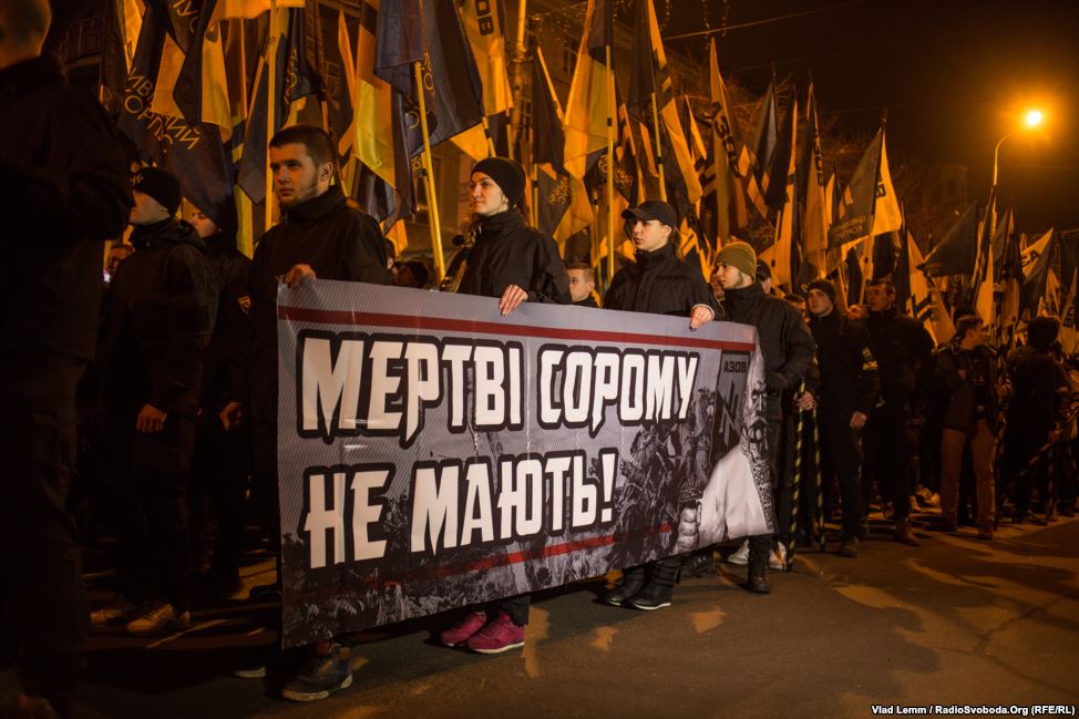 Організували захід бійці та активісти полку «Азов». Почався він із маршу «Іду на Ви!», в якому взяли участь декілька тисяч людей. Із смолоскипами в руках вони пройшлися від драматичного театру в бік площі Свободи (раніше площа Леніна) до встановленого монумента.