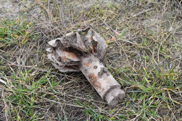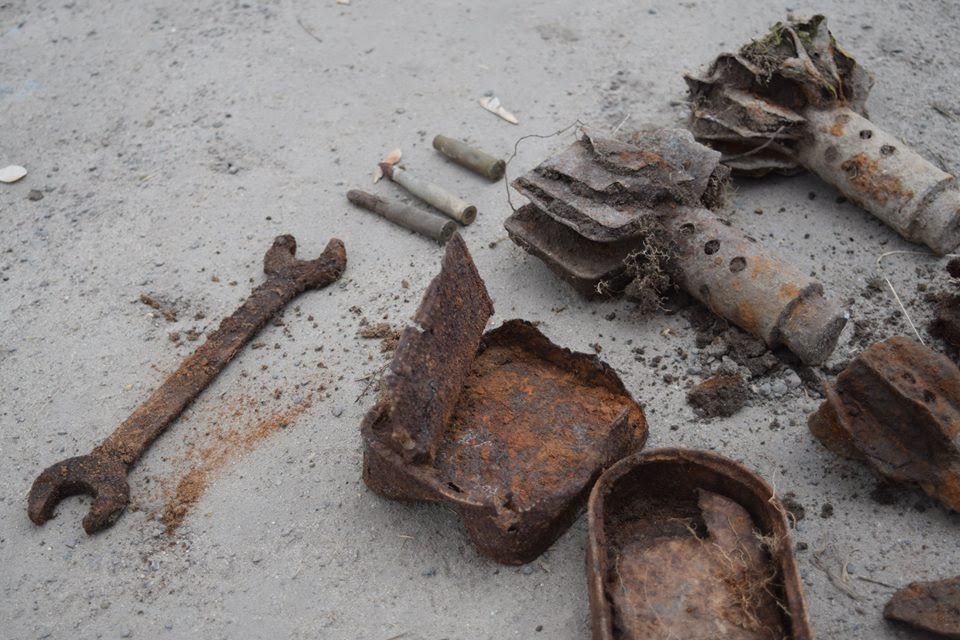Під час цих невеликих археологічних досліджень в окрузі села Журавлине було знайдено частини снарядів, залишки патронів, банки з-під військових консерв.