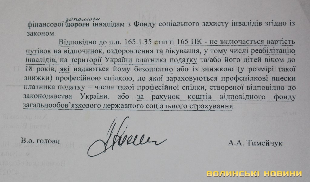 Так, ще в 2011-му році Державна податкова адміністрація Волинської області у відповіді на лист-звернення від громадських активістів інформувала, що при нарахуванні субсидій для таких категорій людей не включаються у дохід вартість путівок на відпочинок, оздоровлення та лікування, у тому числі реабілітація інвалідів, що надаються безоплатно або із знижкою (у розмірі такої знижки) професійною спілкою, до якої зараховуються профспілкові внески платника податку члена такої професійної спілки, створеної відповідно до законодавства України, або за рахунок коштів відповідного фонду загальнообов’язкового державного соціального страхування.