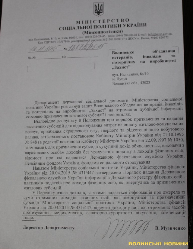 Проте, незважаючи на запевнення, особам з інвалідністю внаслідок трудового каліцтва при оформленні субсидій і надалі продовжували враховувати у дохід соціальні пільги. Тож у 2015-му році волиняни звернулися за роз’ясненнями до Мінсоцполітики.
