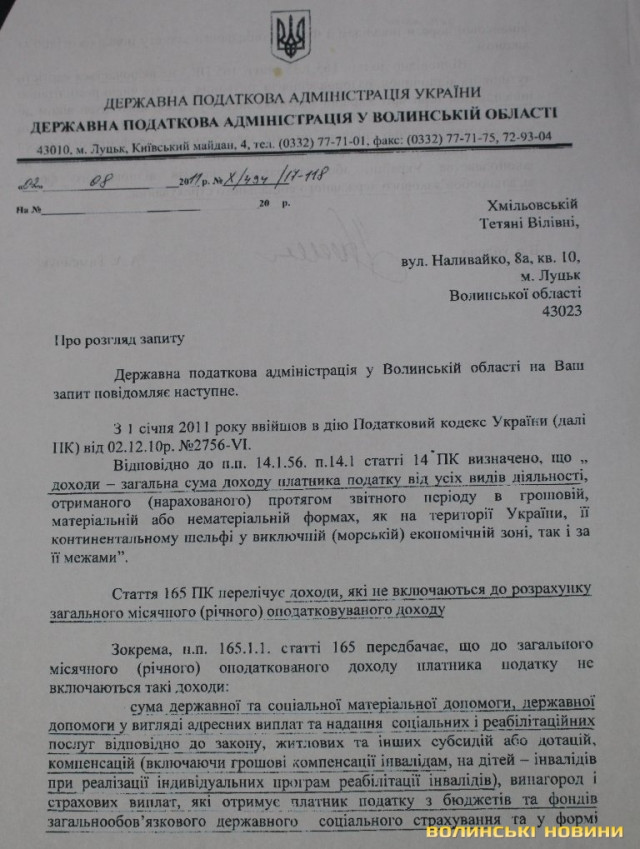 Тож аби відновити справедливість, каже пані Тетяна, у серпні написала лист у столичні відомства, зокрема президенту та в Генпрокуратуру.