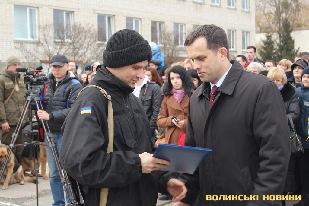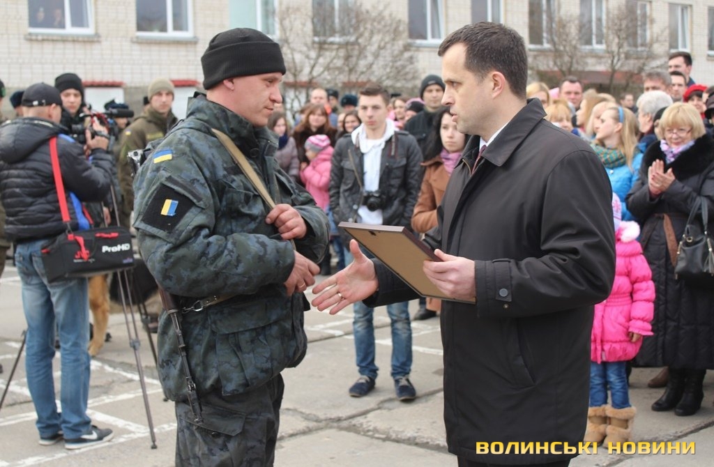 Відео приїзду у частину військовослужбовців.За мужність і героїзм, виконання поставлених завдань, волиняни отримали відзнаки від голови облдержадміністрації, Луцького міського голови та управління МВС України у Волинській області.
