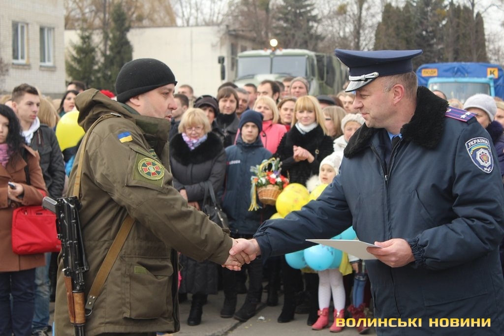 Бійці Нацгвардії повернулися в повному складі, без втрат і поранених, на місце постійної дислокації в Луцьк у військову частину 1141. Після двох місцяців несення служби в зоні АТО їх зустріли рідні, очільники краю й військові-побратими.