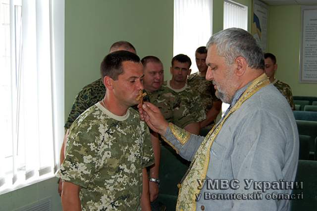 Перед від’їздом правоохоронців благословив священик, подарувавши кожному натільний хрестик.