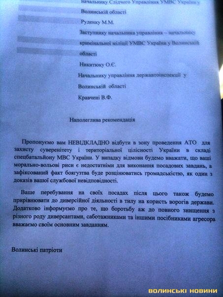 До слова, такий документ у вигляді наполегливої рекомендації ті запропонували на розгляд заступникам. У ньому правоохоронцям пропонують відбути у зону АТО, відмову прирівнюють до «диверсії та роботи в тилу на користь ворога». Щодо заяви їхати на Схід Руденко прокоментував, що діятиме так, як йому скажуть в міністерстві.