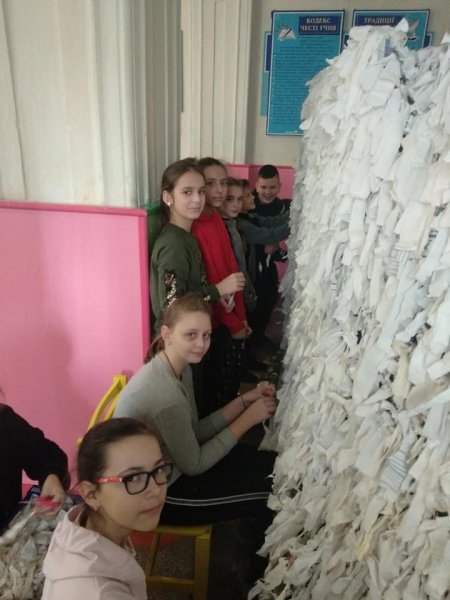 «Напружена ситуація в нашій країні вимагає рішучих дій від дорослих, та не залишає байдужими і дитячі серця. Учні беруть участь у благодійних акціях, волонтерських проектах для благородної справи – допомоги воїнам ООС. На цей раз юні патріоти долучилися до акції «Захисти захисника» і сплели зимову маскувальну сітку», – йдеться у дописі.