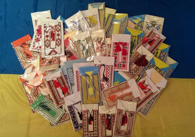 "Наші волинські діти та їх вчителі передали для продажу свої роботи: картини серіі «Це моя Україна» -12 робіт, картини з серіі «Квіти України» - 13 робіт, картини з серіі «Незалежна Україна за МИР!» - 20 робіт, браслети плетені - 60 штук, вишиті конверти для вітань - 80 штук, вишита бісером блуза - 1 штука. Також, на прохання наших ізраїльських друзів, ми додали 2 набори «Ковельського борщу», який сушимо для хлопців в зону АТО та 5 прапорів України (від Раїси Хвищук)", - йдеться у повідомленні.