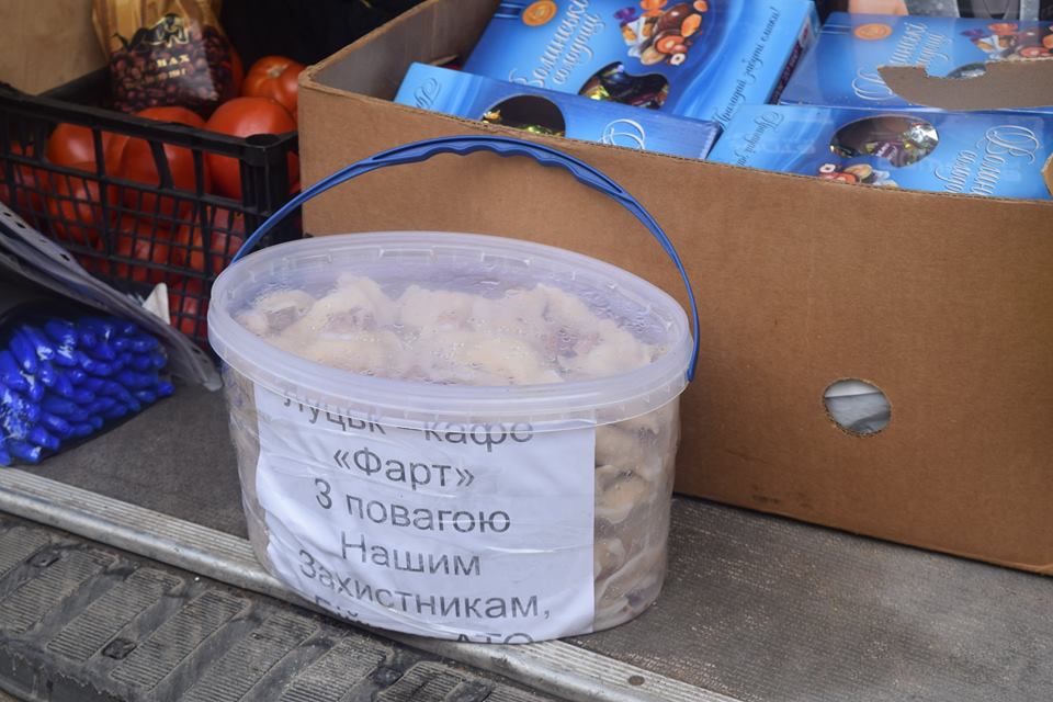 За підтримки спонсорів активісти підготували для бійців запчастини, плівку для бліндажів, бензопилу, скоби, теплий одяг та продукти. Допомогу надали підприємці Павло Товстенюк, Ірина Кун, Віталій Пернарівський та депутати Волинської обласної та Луцької міської рад від партії «УКРОП» Сергій Леонтьєв та Сергій Шкода.