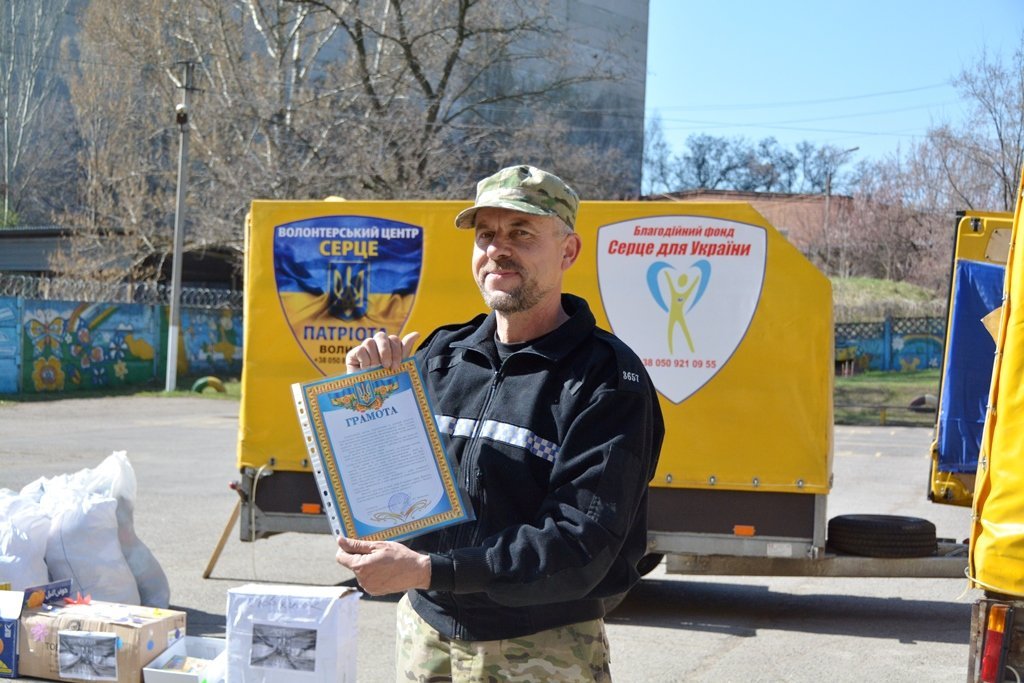 Синьо-жовтий стяг, звісно, у керівника та засновника волонтерського центру «Серце патріота», депутата Луцької міської ради від фракції «УКРОП» Сергія Балицького був. Це 145-та поїздка в зону АТО волонтерів цього центру. У самого ж Сергія Івановича передвеликодня мандрівка ювілейна – сімдесята. Тож за три роки волонтерства він як ніхто знає, які потреби у військовослужбовців. Забігаючи наперед, скажу: це був не єдиний блокпост, на якому в нас просили прапор.