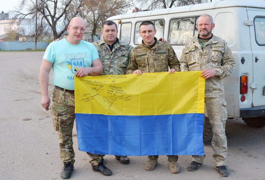 «У вас немає випадково прапора? – питає військовий з Полтавщини, що саме чергує на блокпосту. – А то я скоро – додому. Хочу на пам’ять зібрати автографи тих, із ким стояв пліч-о-пліч весь цей час».
