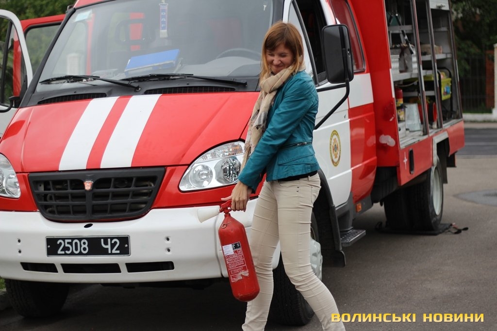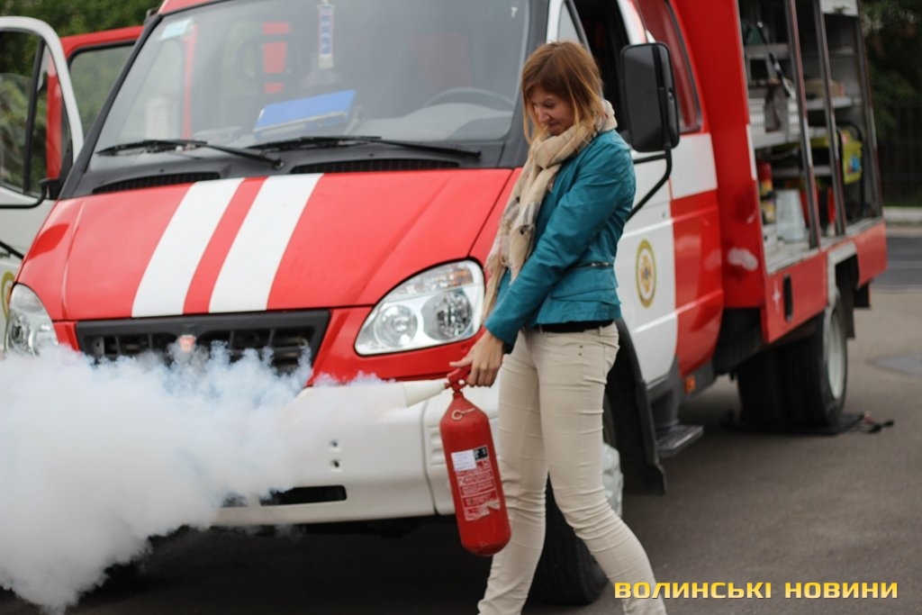 МНСники також продемонстрували техніку, з якою вони працюють, й показали представникам ЗМІ, як потрібно користуватися вогнегасниками.