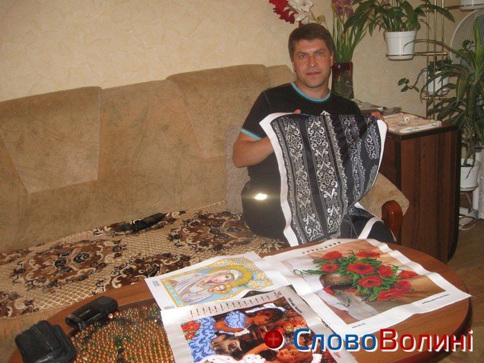 – Згадав про своє дитяче захоплення років чотири тому. Вишиваю переважно бісером, бо така вишивка гарніше виглядає, – каже Віталій. – Відтоді вишивання стало для мене улюбленим відпочинком після важкої роботи у лаві. Зрівнятися з ним може хіба що тихе полювання, на яке ми теж полюбляємо виїжджати всією родиною. На вишивання сорочки іде приблизно місяць. Звичайно, якби не ходив на роботу, вистачило б і двох тижнів. Сидячи з голкою за полотном, викладаючи ікони чи створюючи свої композиції, я відпочиваю душею і забуваю про життєві негаразди.