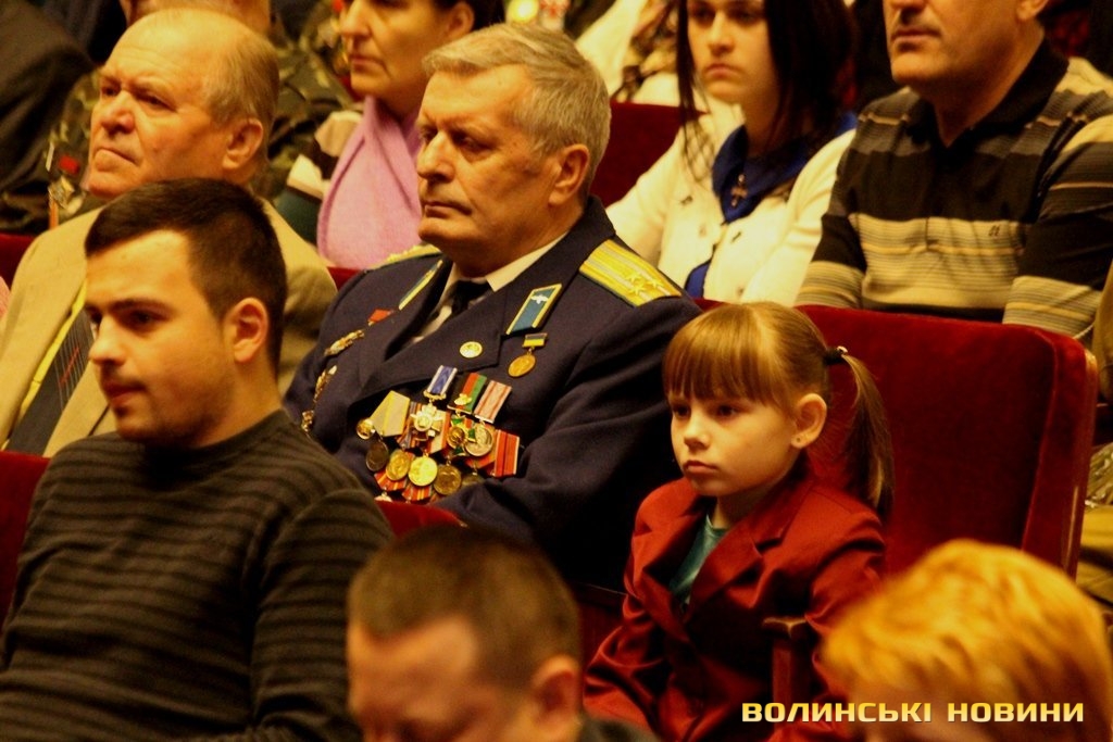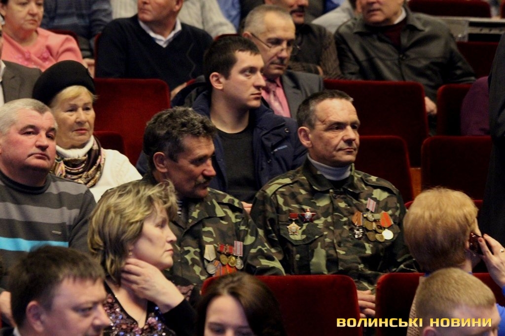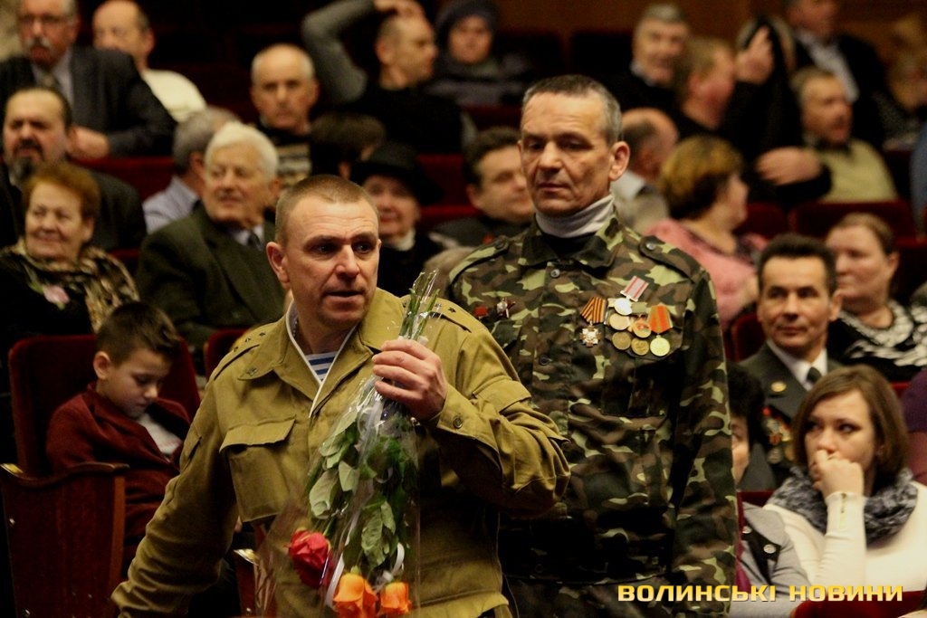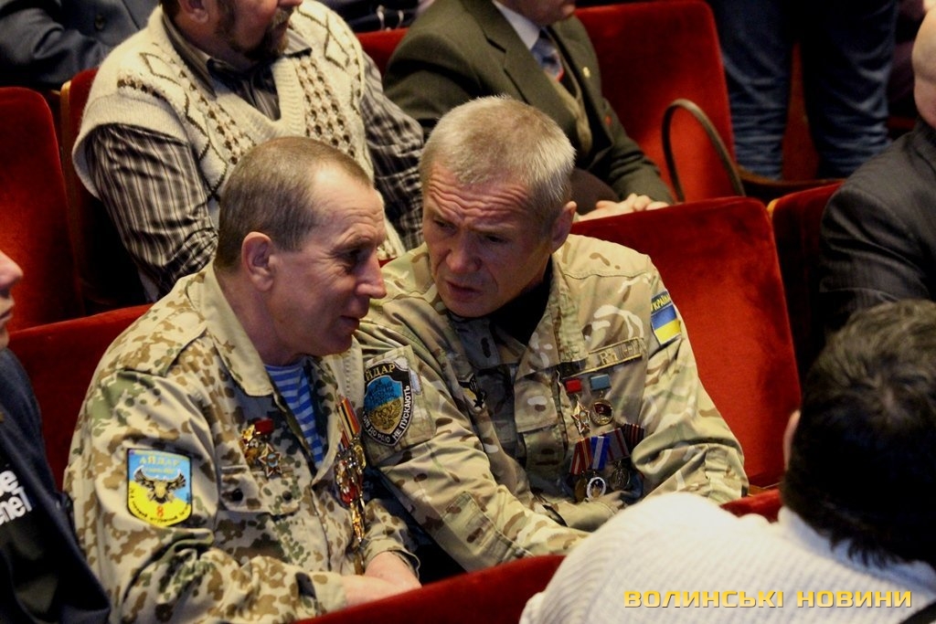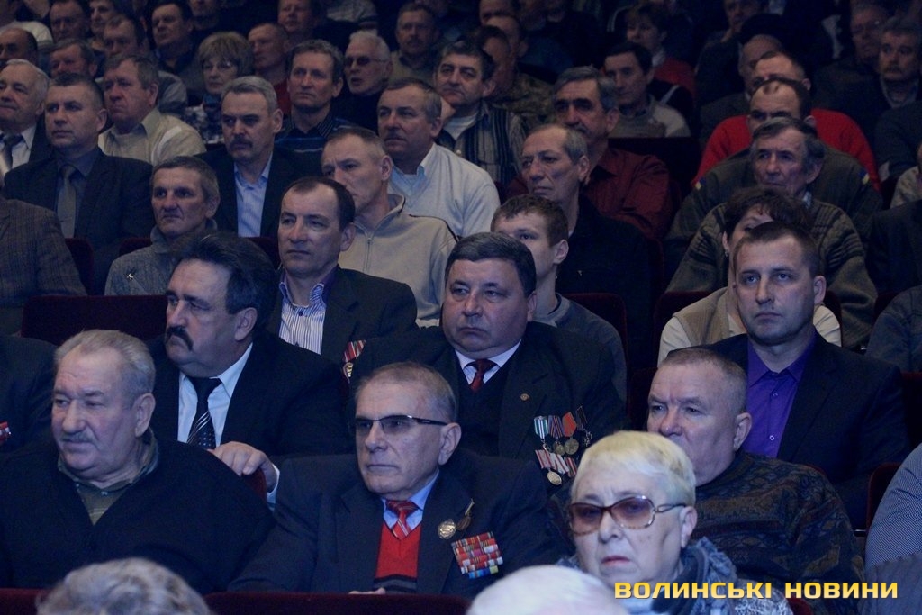 Учасники зібрання вшанували загиблих побратимів хвилиною мовчання. Так сталося, що на долю афганців випала ще одне випробування: конфлікт на сході країни.«Ми мали надію, що афганська війна - це єдина біда, яку нам довелося перенести. Але сталось ще жахливіше в нашій країні – гине мирне населення, наші воїни, які захищають батьківщину від бойовиків, над країною витає страшне слово «війна». Афганці і зараз воюють там. Сьогодні на сході країни - 150 волинських афганців.Волинська спілка афганців стала однією з перших і найпотужніших волонтерських організацій. За 2 роки на благодійний рахунок надійшло 3,4 мільйона гривень. За ці кошти закуповувалися автошини, запчастини, тепловізори, бронежилети, аптечки, навігатори, спальні мішки, рації, балаклави і багато чого іншого. За два роки Спілка ветеранів Афганістану відправила на потреби фронту 12 джипів, 2 УАЗи, 1 ЗІЛ, 1 «швидку». А на лінію фронту волонтери від спілки виїжджали більше 60 разів, доставляючи вантажі.Григорій Павлович зауважив: потрібно далі лобіювати прийняття і виконання програм покращення життя ветеранів, поліпшення їх житлових умов, збільшення видатків на житлове будівництво. Останні декілька років афганці від держави житла не отримували.