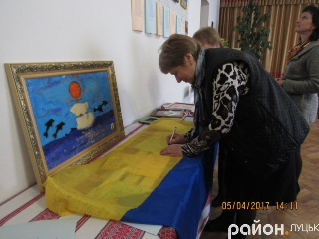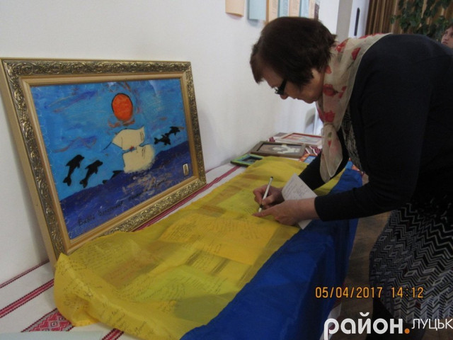 Крім цього, усі охочі могли насолодитись витонченою музикою скрипальки з музичної школи імені Фредеріка Шопена Наталії Стретчен і смачним частуванням. Володя ж запропонував написати на прапорі побажання.