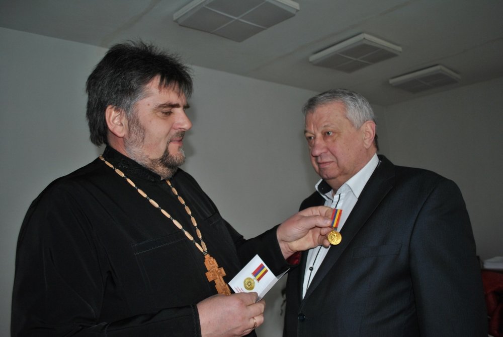 Медаль «За жертовність і любов до України» начальникові управління агропромислового розвитку РДА Миколі Панасюку вручив декан і настоятель парафії Вознесіння Господнього, протоієрей Андрій Сидор.