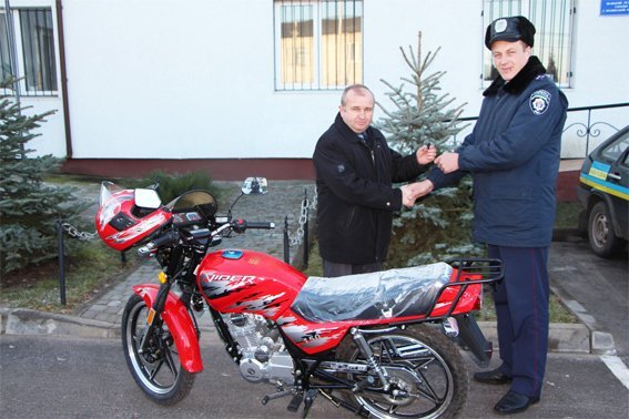 Китайський мопед - такий подарунок старшому лейтенанту міліції Анатолієві Денисовцю презентував Світязький сільський голова, повідомили у прес-службі волинської міліції.