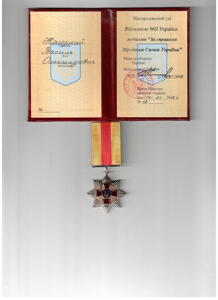 «Результати, зокрема по бійцях 51 бригади, якими я найбільше займався, невдовзі оприлюдню, бо таки з`явилось світло в кінці тунелю. Щиро дякую, за подання моєї скромної персони в Міноборони на відзнаку «За сприяння Збройним Силам України». Коли відкрив пакет на пошті, думав помилились адресатом», - йдеться у дописі Нагорного.