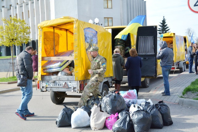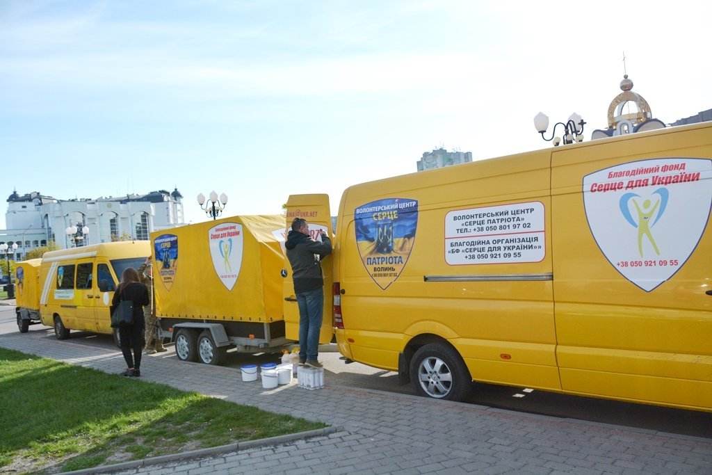 Зі слів керівника волонтерського центру, депутата Луцької міської ради від фракції «УКРОП» Сергія Балицького, два волонтерські буси везуть для діток зі сходу продукти, іграшки, книги, одяг.