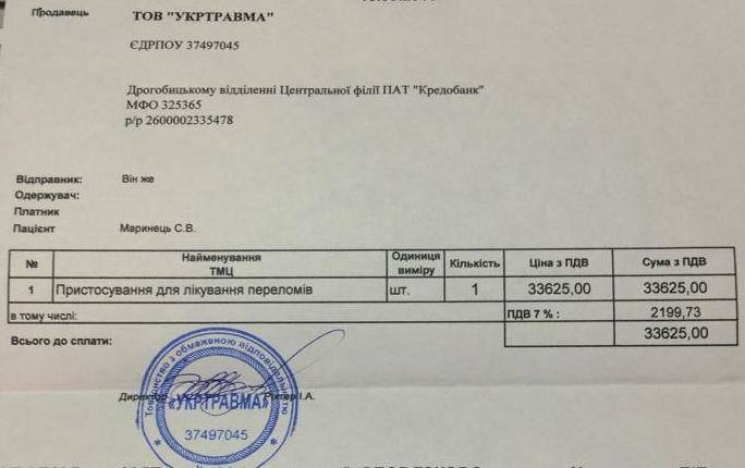 З його слів, Сергій багато лікувався, професор з Києва провів йому складну операцію, поставивиши у тіло майора металічну пластину, щоб той міг стати на ноги. Але справа в тім, що вартісну пластину (33625 грн.) лікарю надали під чесне слово, поки вдасться зібрати кошти.