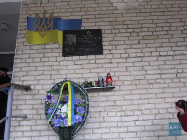 Меморіальну дошку загиблому в зоні АТО бійцю добровольцю, танкісту Дмитру Головіну встановили на фасаді школи №5, в якій він вчився. Про це йдеться на сайті Володимир-Волинської міської ради.