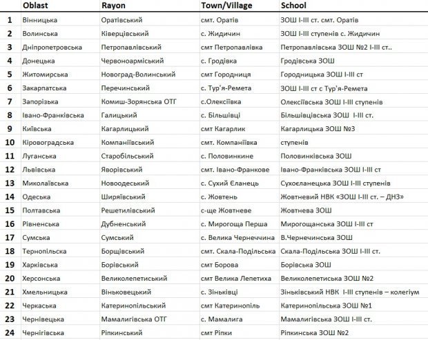 Так, в рамках проекту відібрали 24 школи по всій Україні, яким виділять кошти на розвиток матеріально-технічної бази.