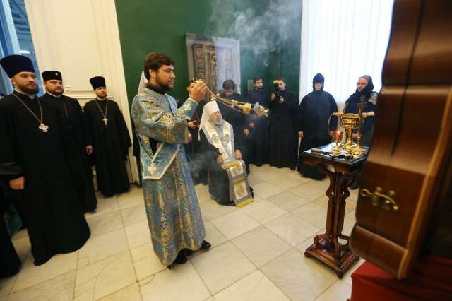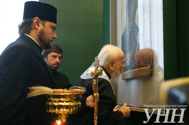 У Національному художньому музеї України Предстоятель Української Православної Церкви Блаженніший Митрополит Володимир освятив список чудотворної Волинської ікони «Одигітрія» (14 століття) біля оригіналу, який з 1962 року зберігається в музеї, - інформує УНН.