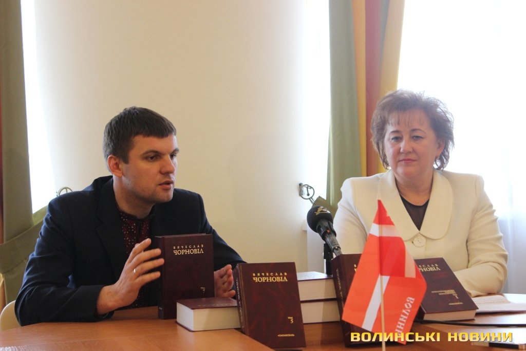 Як розповів заступник голови обласної ради Ігор Гузь, Міжнародний благодійний фонд імені В’ячеслава Чорновола взяв участь у проекті «Українській школі – українську книжку!». З його слів, наразі видали 8 томів зібрання творів В’ячеслава Чорновола, протягом року вийдуть друком ще два томи зібрання творів, які також передадуть у волинські шкільні бібліотеки.