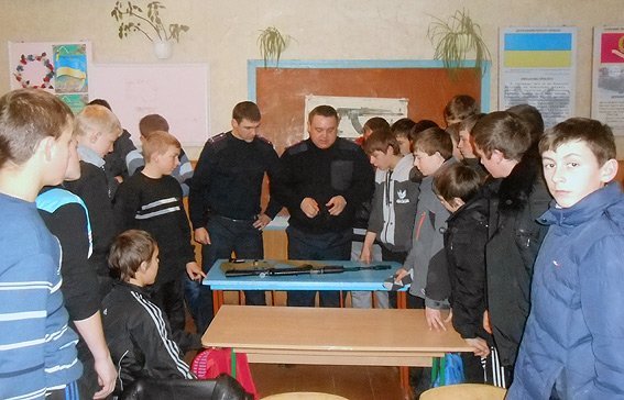 Правоохоронці ознайомили школярів із тактико-технічними характеристиками пістолетів Макарова, Форд-12 та автомата Калашникова. Підлітки своєю чергою з неабиякою цікавістю фотографувалися зі зброєю.