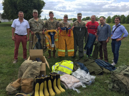 Зі слів волонтера, муніципальна пожежна охорона з Торонто трошки покористувалась пожежними костюмами-обладунками і списала їх. Екіпірування та інші корисні речі передали канадці для пожежно-технічного підрозділу 14-і ОМБ. Серед них: 20 комплектів вогнетривких костюмів та комбінезонів із NOMEXу, специфічне взуття (10 пар), зимову форму, комбінезони та спальники