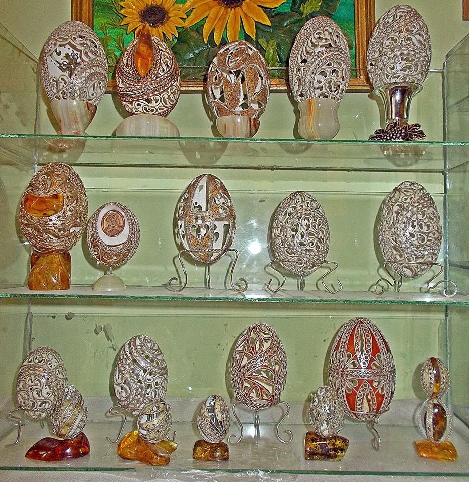 «Реалізується частина колекції, яка встановила національний рекорд. Виручені кошти підуть на закупівлю інструментів та обладнання для безкоштовного навчання талановитих дітей сиріт, дітей загиблих, дітей учасників АТО та по бажанню самих учасників бойових дій різьбі по яєчній шкарлупі, та техніки дряпанки, холодному куванню по металу тощо.