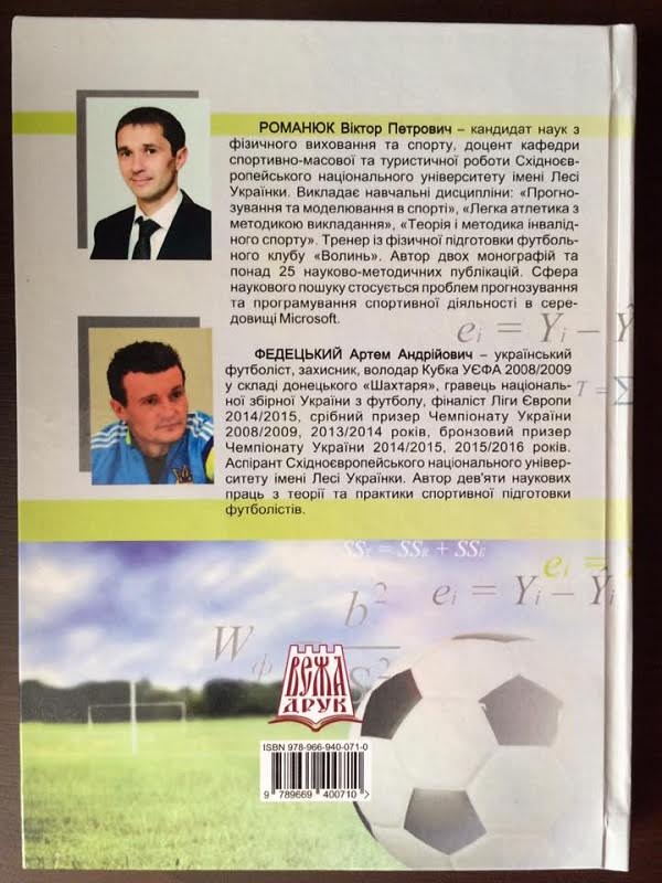 Нещодавно світ побачила монографія «Прогнозування та моделювання у футболі за допомогою електронних таблиць Microsoft Excel». Авторами праці стали викладач СНУ імені Лесі Українки, тренер з фізичної підготовки ФК «Волинь» Віктор Романюк та футболіст німецького ФК «Дармштадт 98» Артем Федецький.
