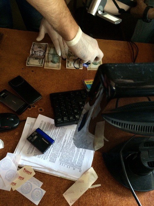 Серії та номери усіх купюр співпали з тими, які були вручені автовласнику для передачі хабара. Крім цього, усі купюри, як і руки Волонтира, «світилися».