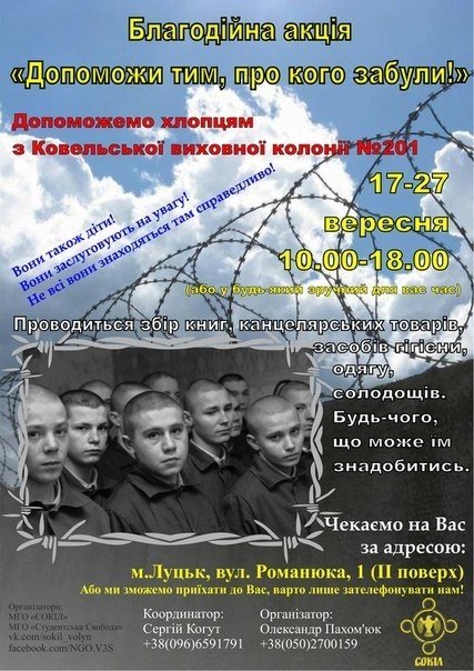 Збір книг, канцелярських товарів, засобів гігієни, одягу, солодощів – будь-чого, що може стати в нагоді хлопцям із Ковельської виховної колонії №201, стартував у Луцьку.